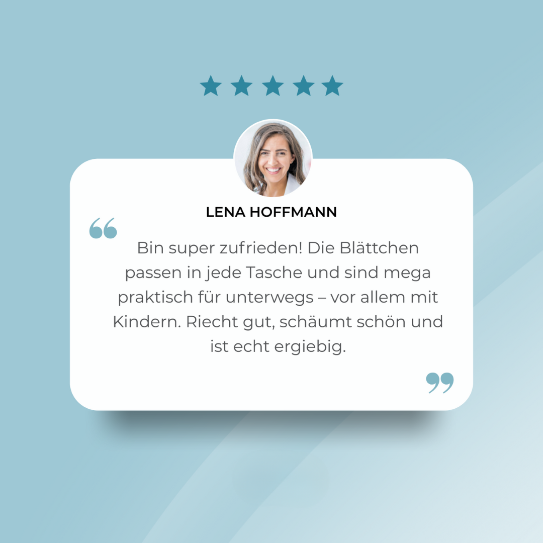 Jede Box enthält 50 Seifenblätter – genug für viele Anwendungen.