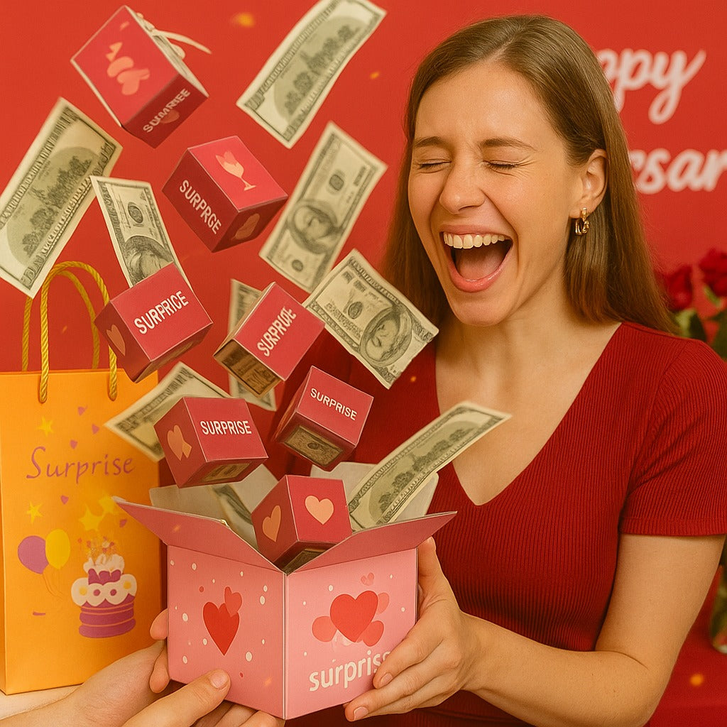 🎁 Regen von Freude und Überraschungen - Wenn die Box geöffnet wird, kommen 10 oder 20 spezielle, flache Papierschachteln zum Vorschein, die die Überraschung im Inneren der SupriseBox enthüllen. Sie können sie mit Geld, Fotos oder anderen wertvollen Gegenständen, die dem Anlass entsprechen, personalisieren!