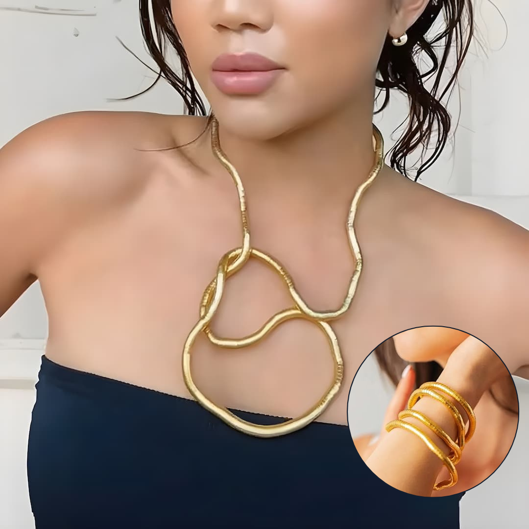 Gefertigt aus hochwertigem Kupfer mit Goldbeschichtung bleibt SkekaLoop™ anlauffrei und farbstabil. Die robuste Verarbeitung bewahrt Form und Glanz bei häufiger Nutzung. Ideal für kreative Frauen, die auffallen wollen, ohne täglich zwischen vielen Ketten zu wechseln. Ein Stück, unzählige Auftritte.