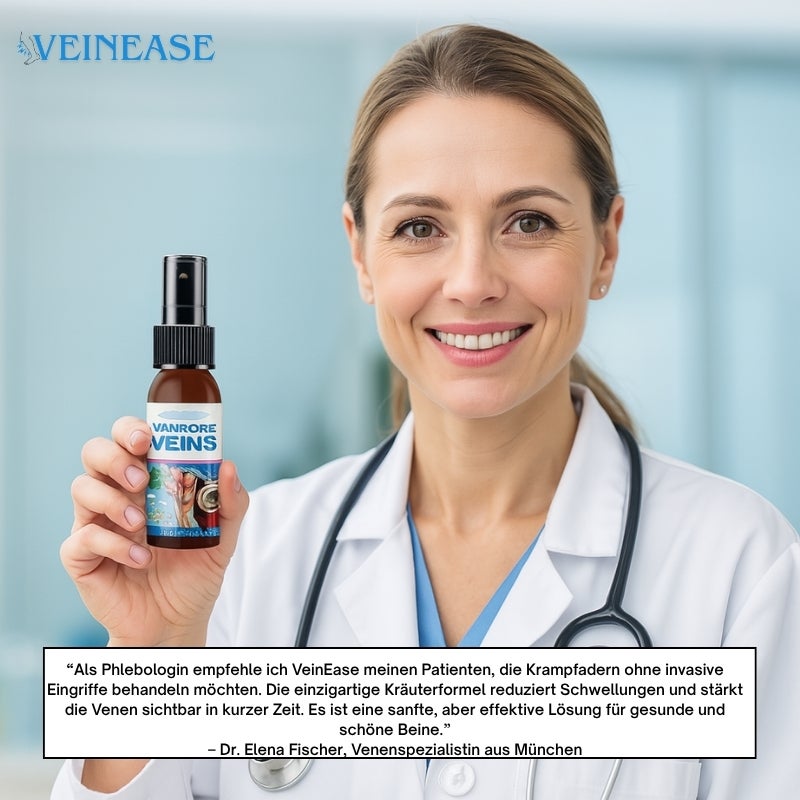„Ich empfehle VeinEase™ meinen Patienten, die schnelle Ergebnisse ohne invasive Eingriffe wollen“, sagt Dr. Elena Fischer, Venenspezialistin aus München.